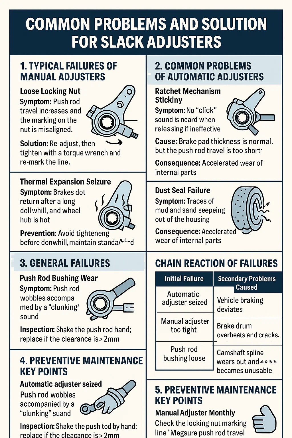 Solusi: Ganti seluruh adjuster (perbaikan pengelasan dilarang).