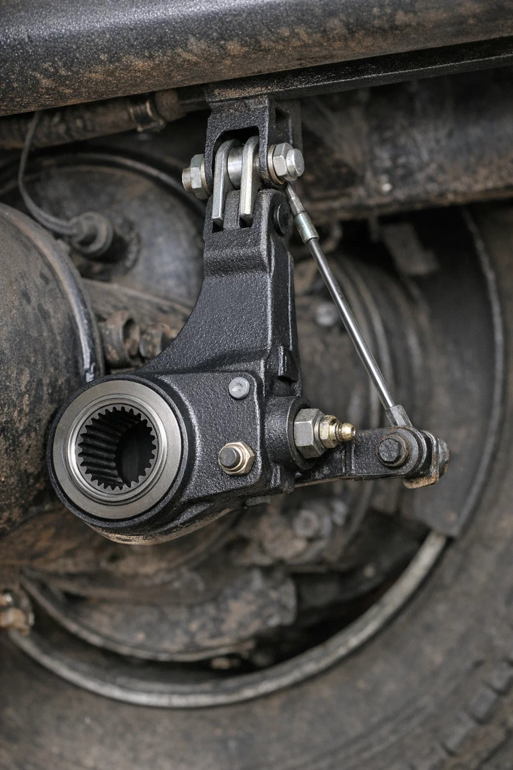 Batang kendali/braket pemosisian: Ini adalah perbedaan terbesar antara ini dan penyetel manual. Model otomatis biasanya memiliki batang atau braket logam ekstra ramping, salah satu ujungnya dihubungkan ke badan penyetel, dan ujung lainnya dipasang ke poros. Batang tipis ini bertindak seperti "penggarisnya", yang digunakan untuk merasakan seberapa banyak bantalan rem telah aus.